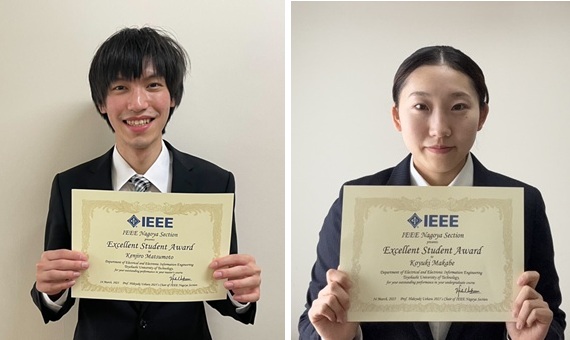 M2松本くん、B4眞壁さんが2024 IEEE Nagoya Section Excellent student Awardを受賞しました.おめでとうございます!